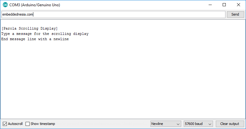 matrix akan menampilkan kalimat persis seperti yang telah dimasukkan ke Serial